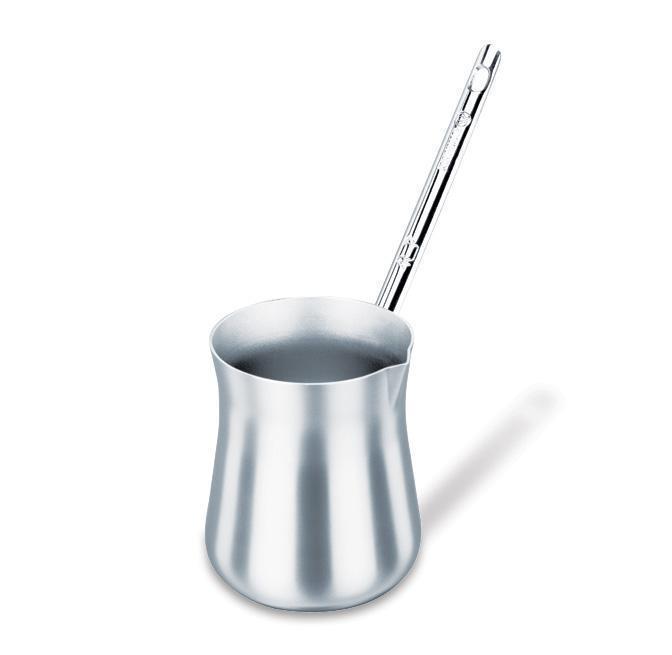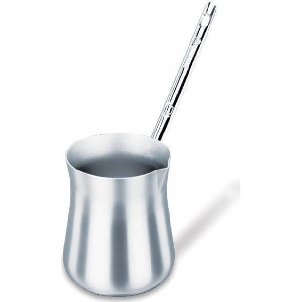 Praktická džezva na přípravu kávy z velmi kvalitního leštěného nerezu. Praktické držadlo nepřenáší teplo a zaručuje bezpečnou manipulaci, obsah vystačí na 3 kávové šálky standardní velikosti. Džezva se může mýt v myčce nádobí.