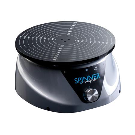 Pokud jednou použijete elektrický otočný stojan, už nikdy nebudete chtít klasický. Tímto otočným stojanem docílíte přesné a dokonale rovné zdobení, již nemusíte jednou rukou zdobit a druhou se snažit stejnoměrně otáčet. Tato točna zvládá otáčení sama, vy si pouze nastavíte směr a rychlost otáčení. Točna disponuje led indikací jasu. Na ploše točny jsou vytištěné stupnice, ty se hodí nejen pro přesné umístění a vycentrování dortu. Technické parametry: Elektrické napětí: 115-230VAC / 50-60 Hz Elektrický výkon: 15W Rozměry: 27 x 26 x H. 12 cm Celková hmotnost 1,6 Kg Velikost desky: D.24 cm.