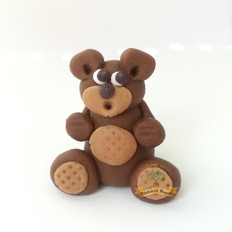 Figurka na dort medvídek hnědý, velikost 5 cm. Vyroben z kokosové hmoty.