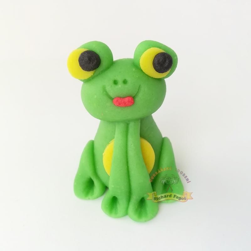 Ručně modelovaná figurka v podobě žáby. Na výrobu byla použita modelovací kokosová hmota s příchutí a aroma sladkých mandlí. Lze s ní ozdobit dorty, rolády, zákusky a další.
