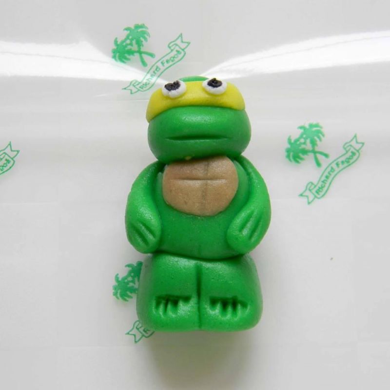 Ručně modelovaná 3D postavička v podobě želvy ninja. Na výrobu byla použita modelovací kokosová hmota s příchutí a aroma sladkých mandlí. Lze s ní ozdobit dorty, rolády, zákusky a další. Složení: