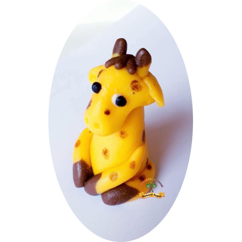 Ručně modelovaná 3D postavička v podobě žirafy. Na výrobu byla použita modelovací kokosová hmota s příchutí a aroma sladkých mandlí. Lze s ní ozdobit dorty, rolády, zákusky a další.