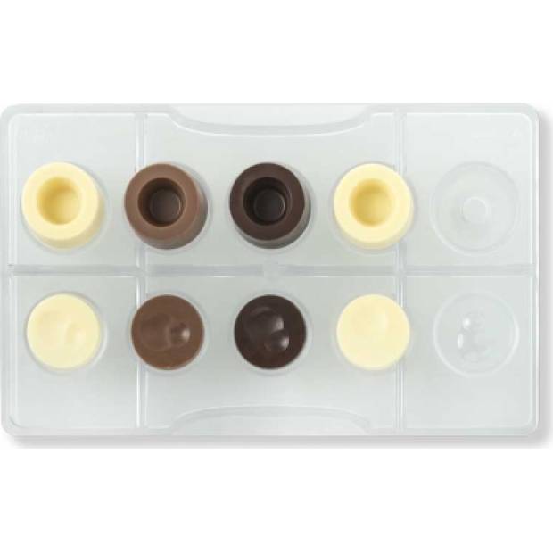 Polykarbonátová forma Decora je ideálním řešením pro vytváření jedinečných čokoládových aplikací. Forma na čokoládu ve tvaru kruhu je vhodná pro vyrábění hotových čokoládek, které lze zabalit zvlášť nebo použít jako dekoraci na dort či pohár. Materiál konstrukce umožní získat atraktivní formované čokolády s lesklým efektem. Vyrobena je z polykarbonátu.