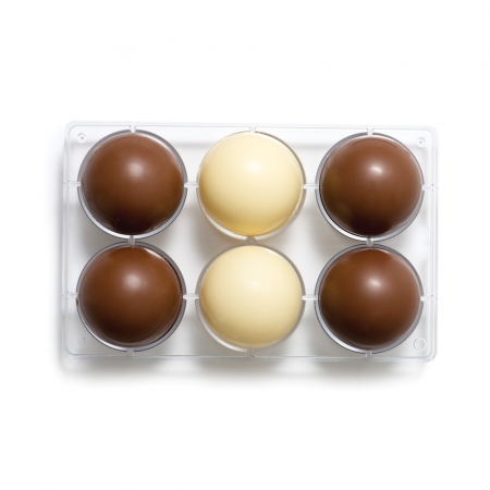 3D polykarbonátová forma na čokoládu ve tvaru koule.