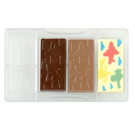 Kompletní řada grafických čokoládových modelů zahrnuje čokoládovou formu na pralinky s motivem letadel. Profesionální tvary formy na čokoládu vyrobené z polykarbonátu, materiál, díky kterému jsou čokolády transparentní a dokonalé. Vytvoříte čtyři kusy čokolády najednou.