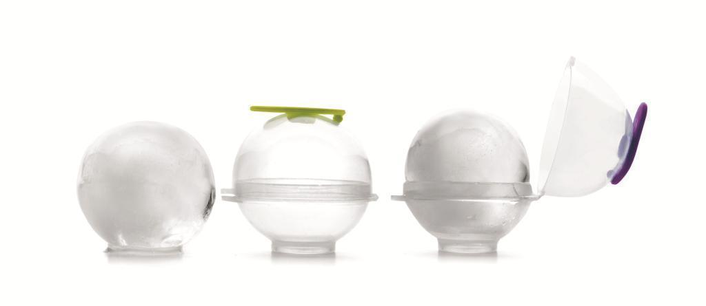 Průměr ledových kuliček je 5,5 centimetru, novinkou můžete udivit přátele, kteří se u vás zastavili na návštěvě nebo přišli jen tak posedět. Podle vědců prý dokonce tento tvar umožňuje lépe využít chladících schopností ledového kousku a tak kromě optického dojmu budou vaše drinky dříve a kvalitněji připraveny ke konzumaci v té správné teplotě, navíc kuličky údajně i déle vydrží. Zamrazit lze samozřejmě i ovocné šťávy a další suroviny, při rozpouštění ve sklenici pak budou pozvolna uvolňovat své aroma a chuť. Mrazicí formy jsou vyrobeny z plastu a v polovině je lze otevřít pro snadné vyjmutí ledu, plnicí otvor uzavírá silikonová zátka.