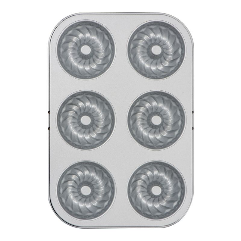 Vyrobte si domácí mini bábovky s pomocí této jednoduché formy. Hotové mini bábovky můžete pokrýt čokoládou, cukrovou polevou atd. Dopřejte sobě i svým blízkým chutnou svačinku. Forma je opatřena nepřilnavým povrchem, jehož účinek můžete umocnit sprejem na vymazání formy. Velikost bábovky je 7,5 x 3,2 cm. Ve formě je 6 otvorů na bábovky. Vhodné pro pečení do 220 ° C a také pro myčky.