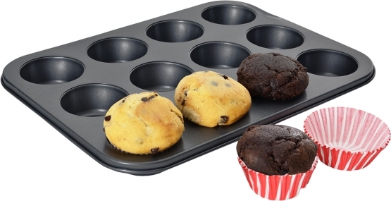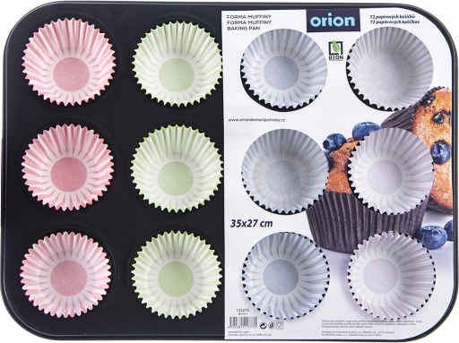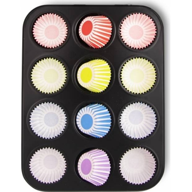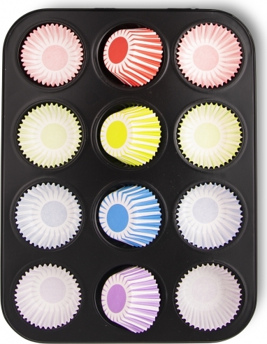 Praktickou formu s nepřilnavým povrchem můžete použít buď přímo, nebo s vloženými košíčky z pečicího papíru, v nichž muffiny, cupcaky, sladké a slané tartaletky budete rovnou servírovat.