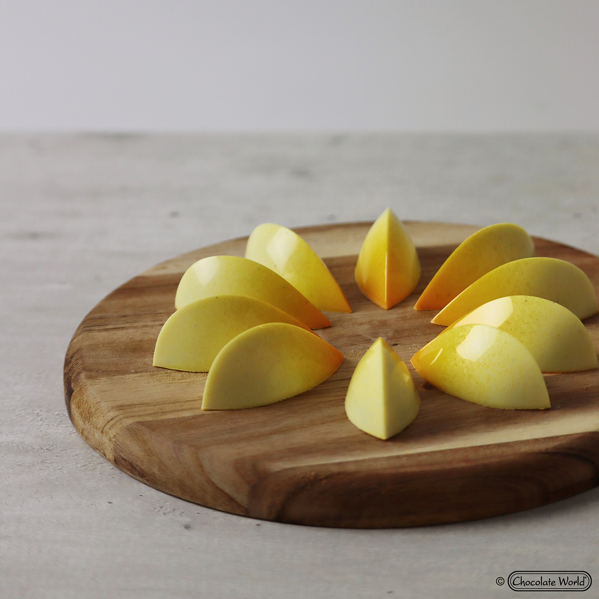 Polykarbonátové formy Chocolate World jsou používány profesionálními čokoládovnami po celém světě. Chocolate World je světovým lídrem na trhu polykarbonátových forem na čokoládu pro profesionální čokoládovny a nabízí největší standardní sortiment forem na světě. Každá forma je vyrobena v Belgii za použití vysoce leštěných nástrojů podle výrobních norem certifikovaných ISO a lidské kontroly kvality. Polykarbonátová forma umožní vyrobit dokonalou čokoládu. Tato vysoce kvalitní evropská forma se snadno používá, vaše čokoláda bude mít lesklý a lesklý povrch a bude se snadno vyjímat. Chcete-li získat barevné čokoládové kousky, natřete si formu tenkou vrstvou barevného kakaového másla, než formu naplníte čokoládou. Design této formy umožní vytvarovat dokonalé tvary s hladce opracovanými liniemi.