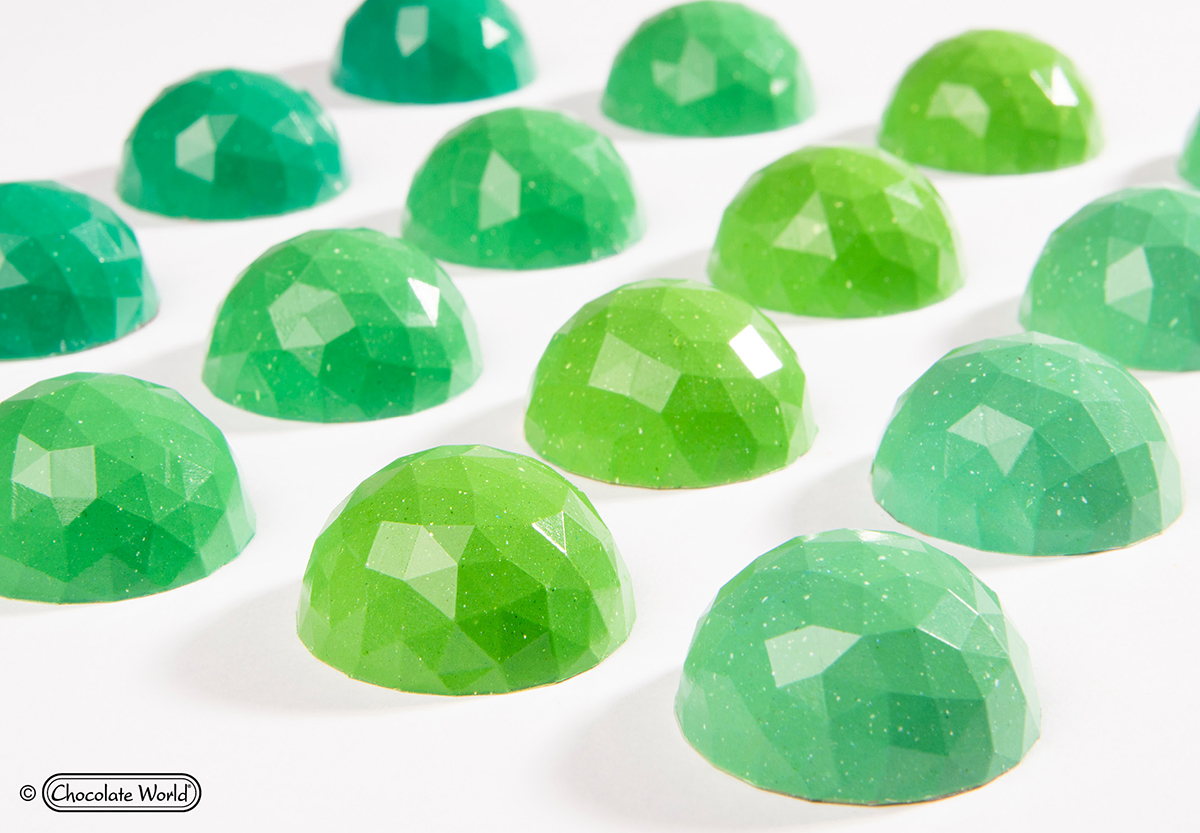 Polykarbonátové formy Chocolate World jsou používány profesionálními čokoládovnami po celém světě. Chocolate World je světovým lídrem na trhu polykarbonátových forem na čokoládu pro profesionální čokoládovny a nabízí největší standardní sortiment forem na světě. Každá forma je vyrobena v Belgii za použití vysoce leštěných nástrojů podle výrobních norem certifikovaných ISO a lidské kontroly kvality. Polykarbonátová forma umožní vyrobit dokonalou čokoládu. Tato vysoce kvalitní evropská forma se snadno používá, vaše čokoláda bude mít lesklý a lesklý povrch a bude se snadno vyjímat. Chcete-li získat barevné čokoládové kousky, natřete si formu tenkou vrstvou barevného kakaového másla, než formu naplníte čokoládou. Design této formy umožní vytvarovat dokonalé tvary s hladce opracovanými liniemi.