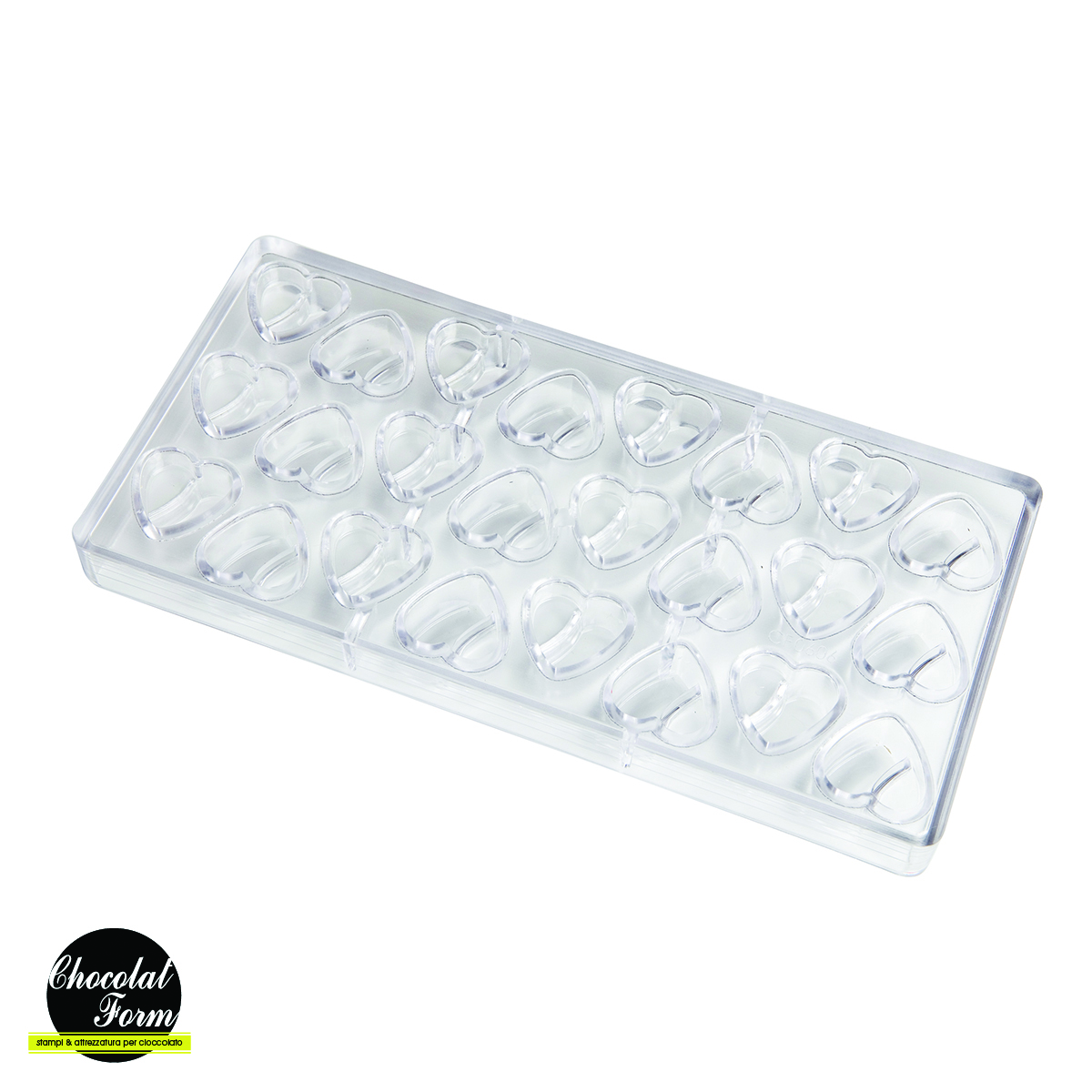 Polykarbonátová forma pro tvorbu dokonalých čokoládových pralinek. Tato vysoce kvalitní evropská forma se snadno používá, vaše čokoláda bude mít lesklý a lesklý povrch a bude se snadno vyjímat. Chcete-li získat barevné čokoládové kousky, natřete si formu tenkou vrstvou barevného kakaového másla, než formu naplníte čokoládou. Design této formy umožní vytvarovat dokonalé srdce.