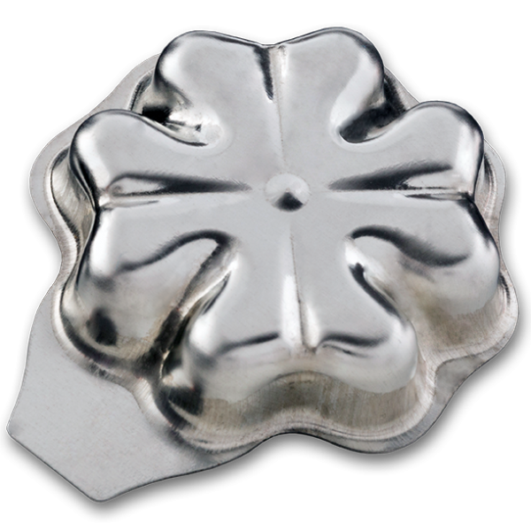 Vyklepávací formička ve tvaru čtyřlístku, ze které těsto jednoduše vyklepete. Formička je vyrobena z pocínovaného plechu. Rozměry 37x8 mm. Tradiční český výrobek. V balení 20 ks.