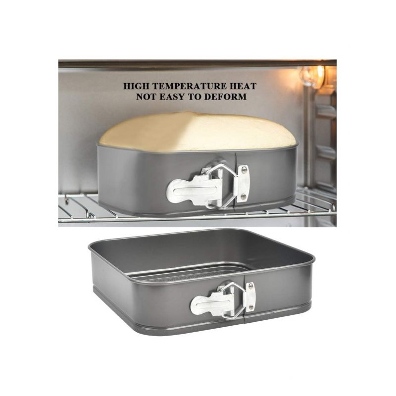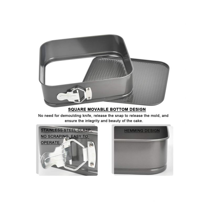 Rozevírací forma na pečení čtvercového tvaru má kvalitní povrchovou úpravu s nepřilnavou vrstvou