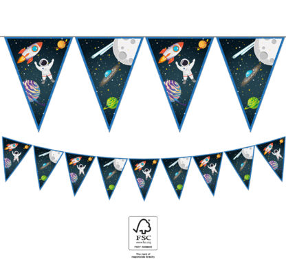 Vlaječková girlanda se bude hodit na každou dětskou oslavu! Pastelové barvy jsou jemné, ale velmi elegantní! Široký banner vám umožní vyzdobit místnost, kde se párty koná! Téma vesmíru potěší malé hosty. Délka: 230 cm, rozměry vlaječky cca 18 cm x 26 cm.