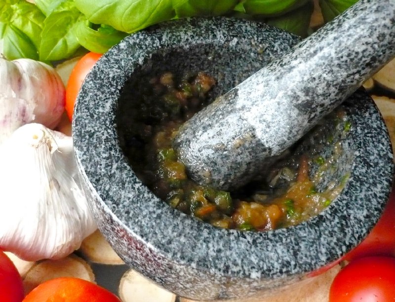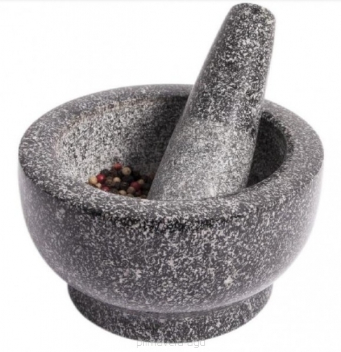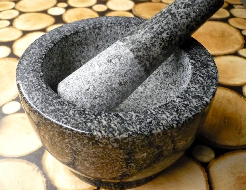 Hmoždíř s paličkou z přírodní žuly na drcení koření i bylinek.