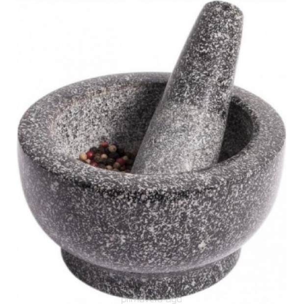 Masivní hmoždíř z přírodního granitu je ideální jak na drcení koření a bylinek, tak i na přípravu pest a zálivek. Přírodní materiál omývejte pouze ručně. Průměr hmoždíře je 13 cm, výška 8 cm. Hmoždíř nepoužívejte na sucho, vždy musí být v hmoždíři, nějaká surovina.