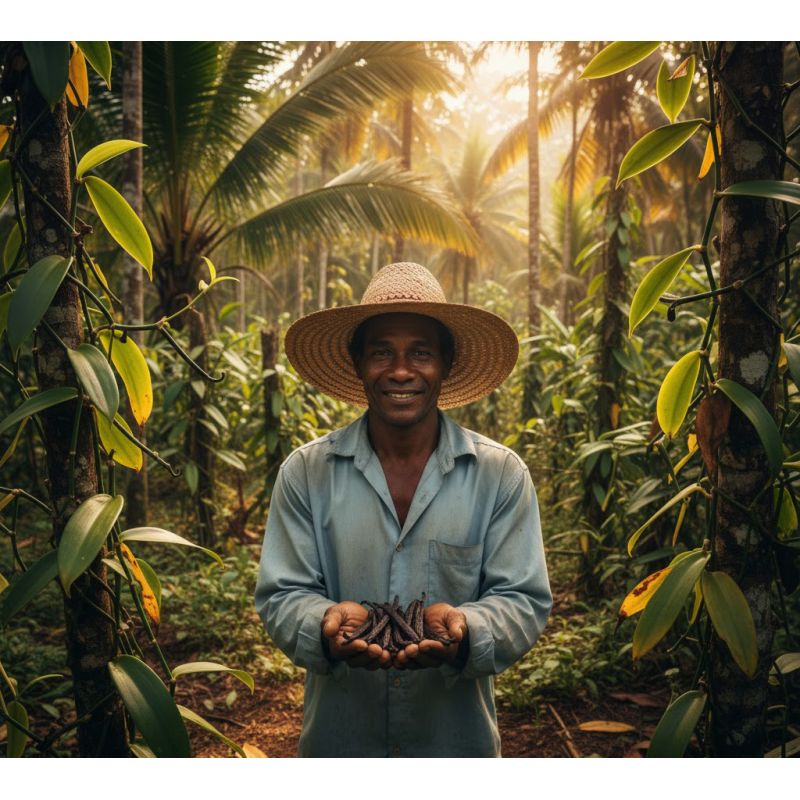 Tato prvotřídní vanilka je pěstována organickým způsobem bez pesticidů a umělých hnojiv. Vanilkové lusky jsou ručně tříděny a vybrány jsou pouze ty nejkvalitnější lusky. Délka lusku je 14 - 19cm. Obsah vanilinu je 1,8% - 2%. Minimální vlhkost 30%