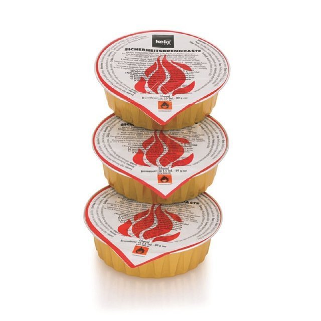 Hořlavá pasta na bezpečné ohřívání náplní fondue v jednorázovém balení. Při úsporném provozu se sníženým přístupem vzduchu vydrží 90 minut, při přímém hoření 90 minut. Tři kusy za výhodnou cenu.