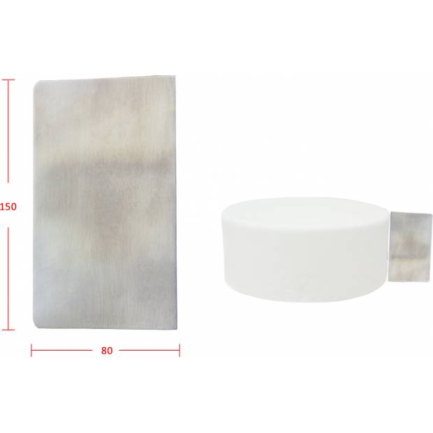 Nerezová cukrářská stěrka bez měřítka. Je vhodná do myčky. Hodí se pro práci s krémem nebo ganache pro hladký povrch. Rozměry 15 x 8 cm.