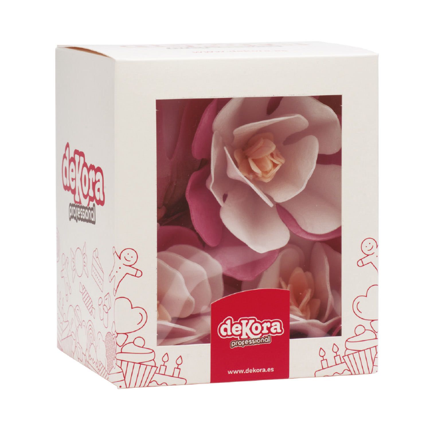 Růžové magnólie z jedlého papíru. Průměr: 6,5-7,0 cm. Množství: 3 ks v balení.