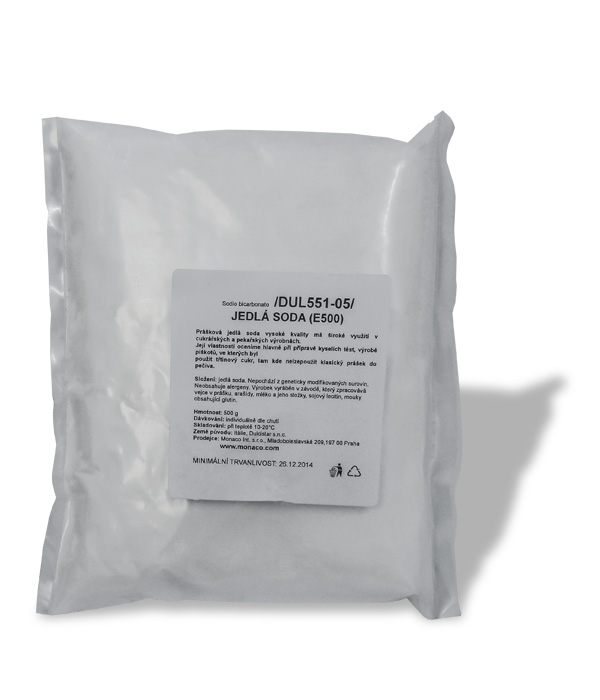 Prášková jedlá soda (E500) je určena pro cukrářské a pekařské výrobny.
