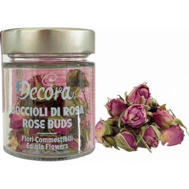 Krásná jedlá poupata růží. Jedlé květiny, ideální pro zdobení a přidání nádechu elegance do jakéhokoli typu kulinářské přípravy. Ideální pro jakýkoli sladký i slaný pokrm. Složení: Poupata růží vonná.Pokyny pro skladování: Skladujte na chladném a suchém místě, mimo sluneční záření a zdroje tepla.