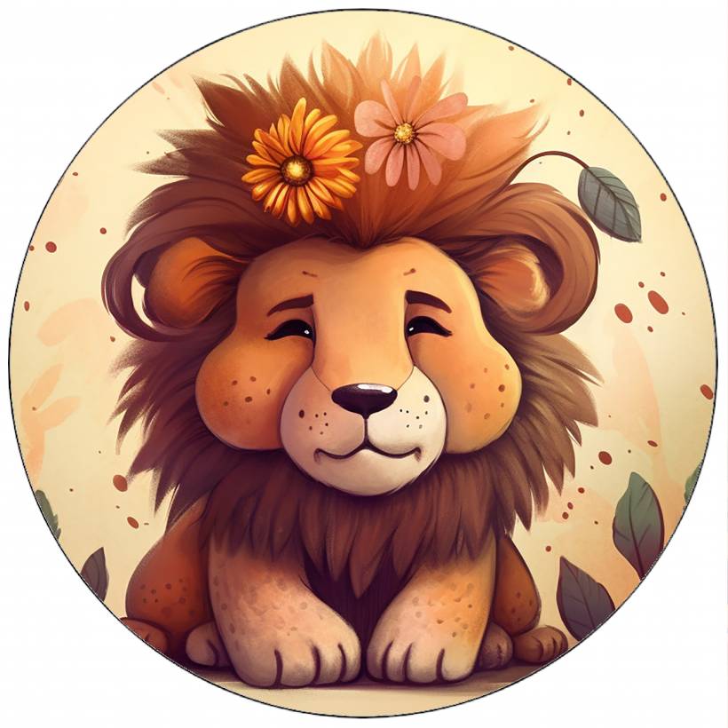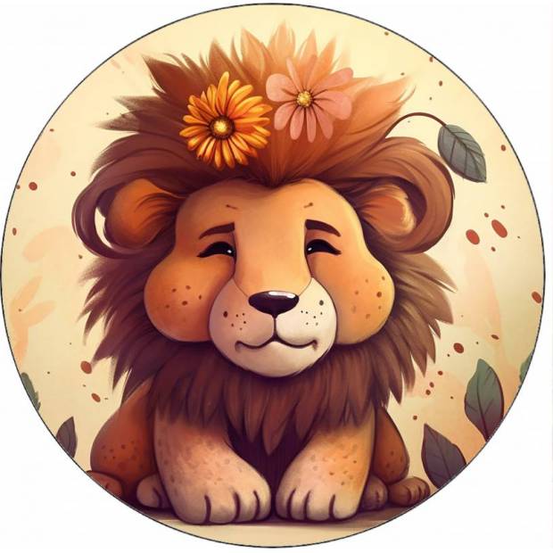 Jedlý papír lev s květinami v hřívě 19,5 cm