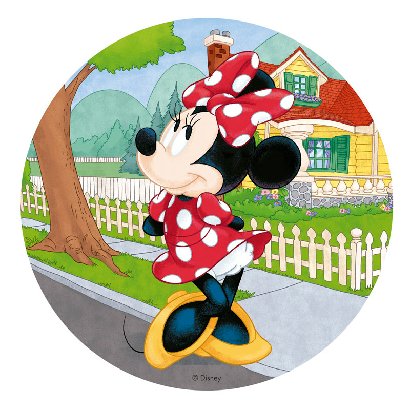 Jedlý papír k jednoduchému a rychlému dekorování dortů. Jedná se o bezlepkový výrobek. Na jeho výrobu jsou použity kvalitní suroviny a potravinářské barvy. Tisk je prováděn ve speciální potravinářské tiskárně. Jedlý dort umožní ozdobení dortu či jiných dezertů. Pokládá se na hotový dort, jehož vrchní díl můžete potřít tenkou vrstvou máslového krému či fixačního jedlého gelu. Papír položte na tuto vrstvu, uhlaďte a potřete opět gelem. Bude lépe držet a rozjasní se jeho barvy. Přikládejte jej na dort minimálně tři hodiny před konzumací, aby byl při servírování dortu měkký. Tento jedlý papír je potištěn motivem Minnie. Průměr 20 cm.