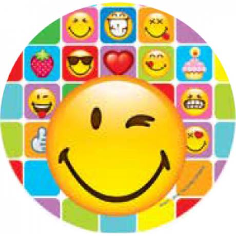 Jedlý papír s mrkacím smajlíkem o průměru 21 cm.