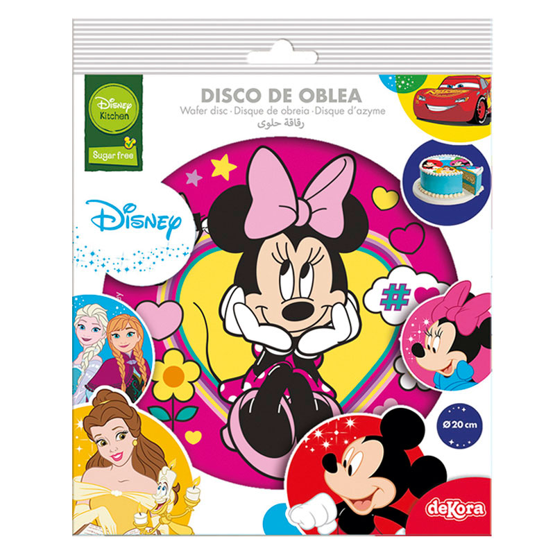 Jedlý papír k jednoduchému a rychlému dekorování dortů. Jedná se o bezlepkový výrobek. Na jeho výrobu jsou použity kvalitní suroviny a potravinářské barvy. Tisk je prováděn ve speciální potravinářské tiskárně. Jedlý dort umožní ozdobení dortu či jiných dezertů. Pokládá se na hotový dort, jehož vrchní díl můžete potřít tenkou vrstvou máslového krému či fixačního jedlého gelu. Papír položte na tuto vrstvu, uhlaďte a potřete opět gelem. Bude lépe držet a rozjasní se jeho barvy. Přikládejte jej na dort minimálně tři hodiny před konzumací, aby byl při servírování dortu měkký. Tento jedlý papír je potištěn motivem zasněné Minnie. Průměr 20 cm.