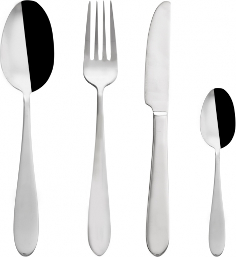 Lesklé nerezové příbory v jednoduchém, minimalistickém designu a elegantní zaoblenou spodní částí, která se příjemně drží v ruce