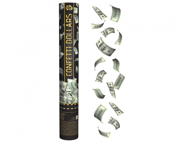 Konfety vystřelující dolarové bankovky. Velikost trubice 40 cm.