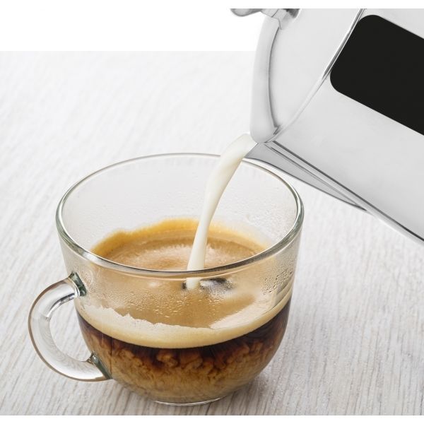 Až už domů, na chalupu nebo s sebou na cesty. Uvařte si vodu na kávu nebo čaj pomocí této krásné nerezové konvice o objemu 2,3 l. Hliníkový úchyt slouží k přenášení nádoby. Víčko snadno odklopíte zatlačením za výstupek u držadla.