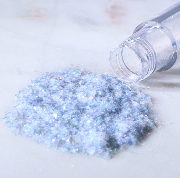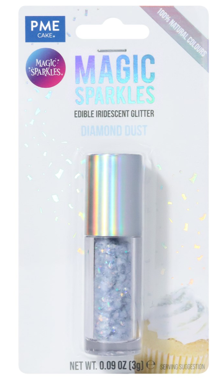 100% jedlé, veganské duhové třpytivé vločky vyrobené z rostlinných barviv. S efektem drahokamu. Používejte na suché povrchy, aby se zabránilo rozpuštění. Třpytivé vločky jsou ideální pro dodání oslnivého nádechu a zajistí, že vaše dezerty budou zářit jasně."