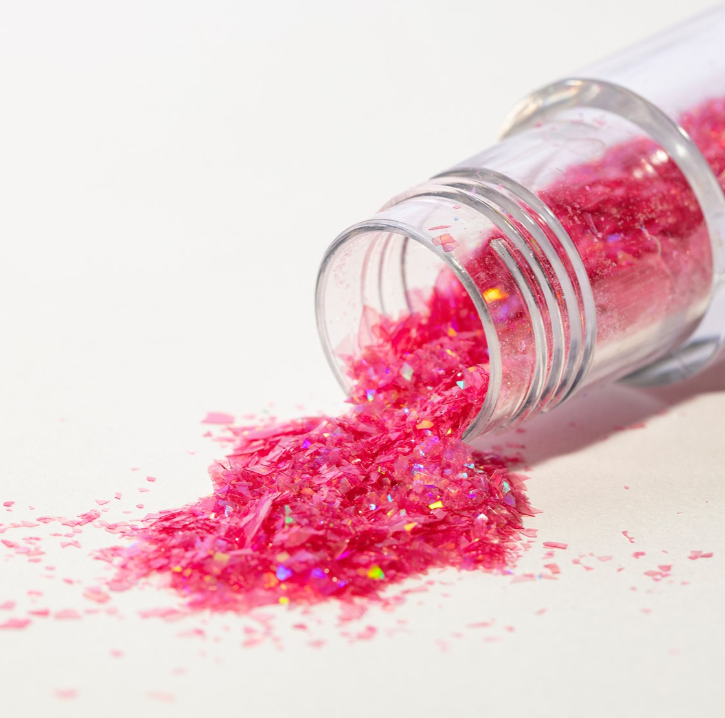 100% jedlé, veganské duhové třpytivé vločky vyrobené z rostlinných barviv. S efektem drahokamu. Používejte na suché povrchy, aby se zabránilo rozpuštění. Třpytivé vločky jsou ideální pro dodání oslnivého nádechu a zajistí, že vaše dezerty budou zářit jasně.
