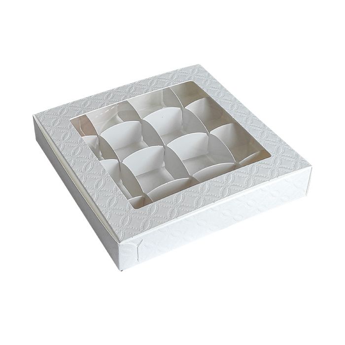Krabička na pralinky s průhledem + mřížka. Rozměry 16 x 16 cm, 10ks
