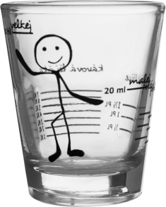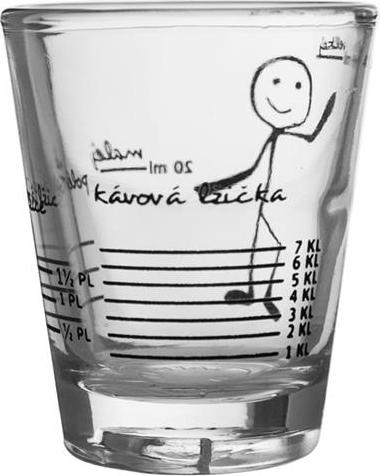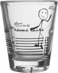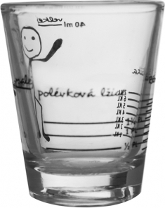 Odměrka sklo. Potisk - odměříte malé množství. Využijete při vaření, míchání nápojů. Materiál: sklo. Nevhodná do myčky na nádobí. Rozměry: objem 0,05 l, pr. 5 cm, v. 6 cm.