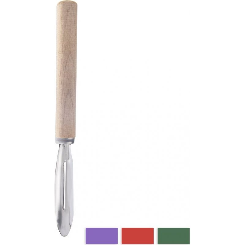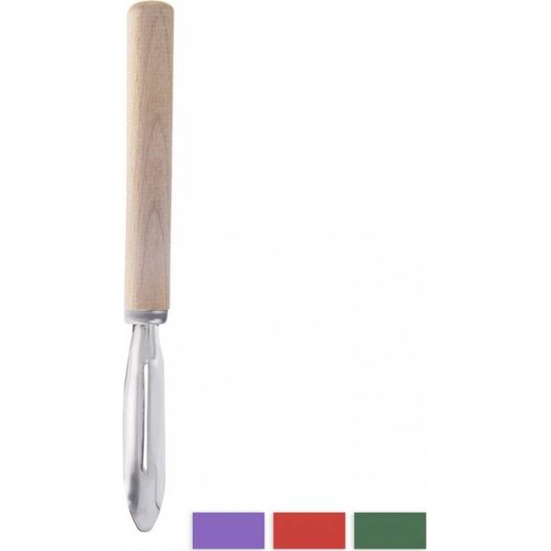 Škrabka kuchyňská na ovoce a zeleninu. Materiál: kov, dřevo. Levá. Rozměry: d. 16,5 cm.