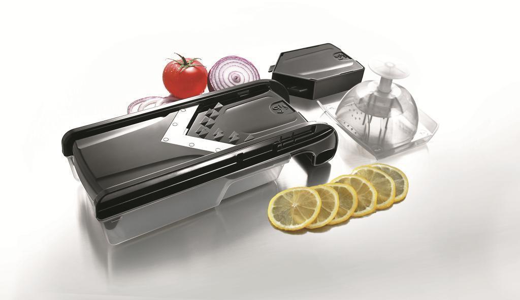 Vzhledově nadčasový produkt, jehož výrobním materiálem je plast. V rámci struhadla můžete obměňovat až pět speciálních násad, které se pyšní zcela odlišnými noži. Strouhat tak lze pochutiny na několik možných způsobů. Kvalita jednotlivých nožů je podpořena precizní nerezovou ocelí.