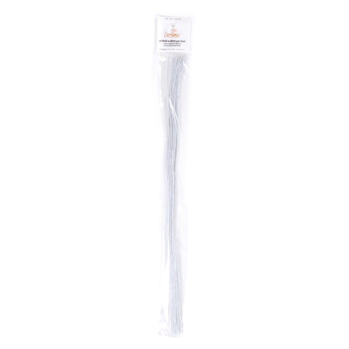 Bílé květinové drátky jsou vyrobeny ze středně silného drátu a potaženy papírem. Vhodné například pro tvarování květin z gumpasty. Délka drátků je 40 cm. V balení 50 ks.