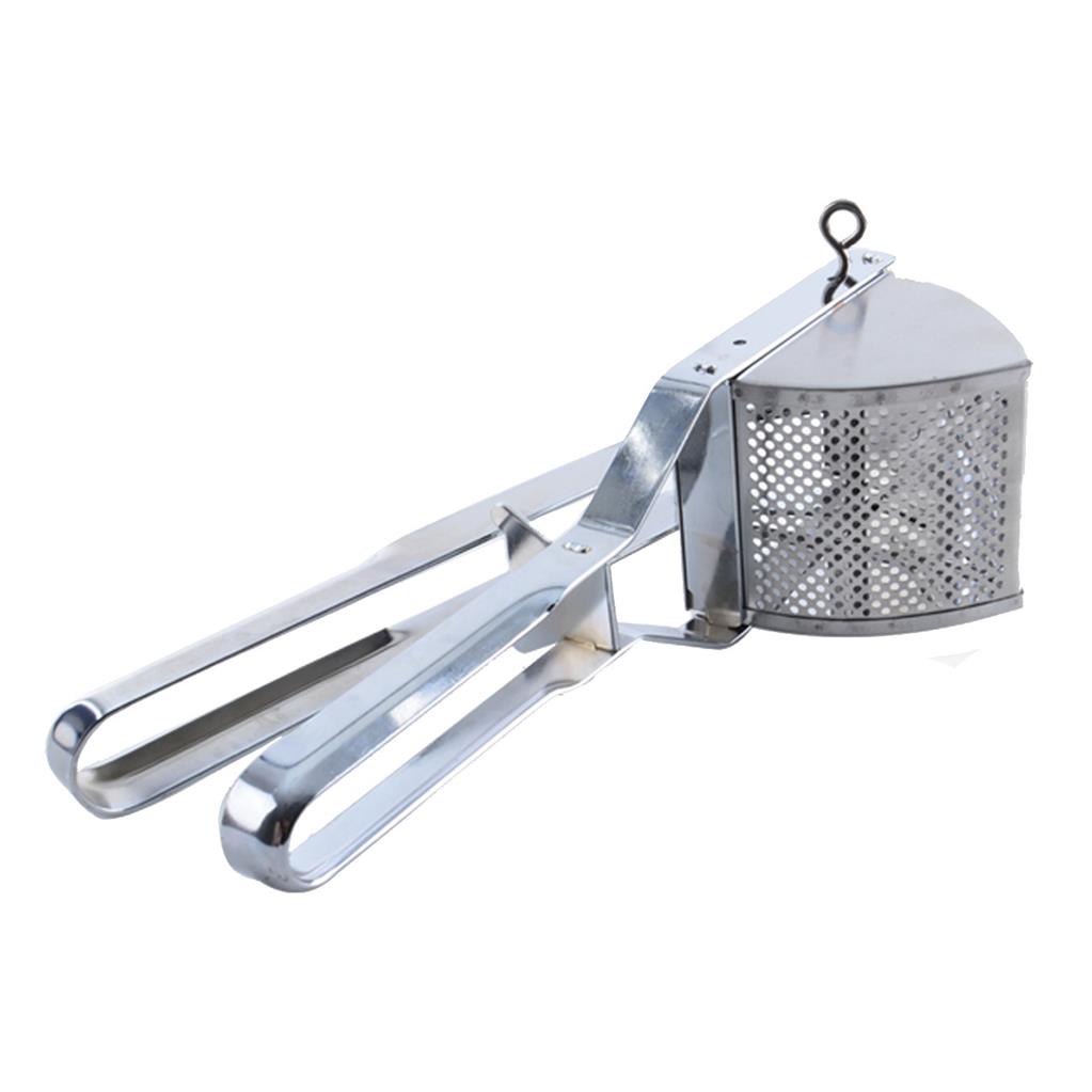 Nerezový lis na brambory z ušlechtilé oceli 18/10. Rozměry 31 x 10 x 13,5 cm.