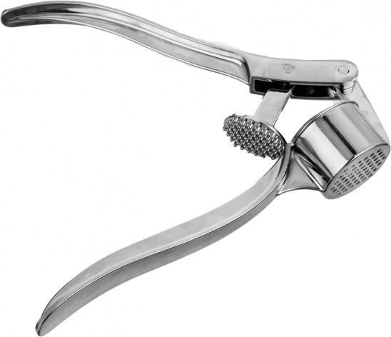 Kovový lis na česnek nahradí pracné tření česneku nožem. Stačí vložit oloupaný stroužek česneku a tlakem, stiskem rukojetí, dojde k prolisování stroužku skrz otvory. Do polévky, pomazánky i bramboráků.