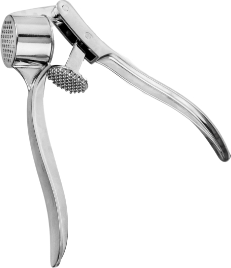 Klasický lis na česnek s poněkud vylepšeným moderním vzhledem, vyrobený z prvotřídní nerezové oceli,