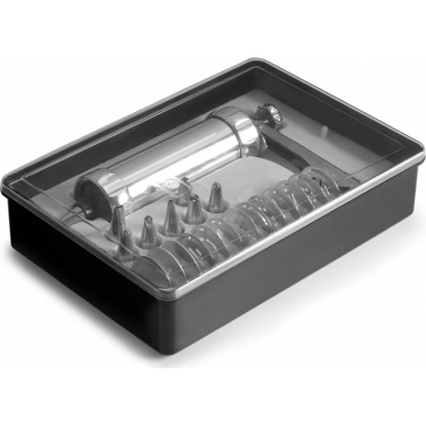Ideální pro výrobu tradičních churros, sušenek a dekorací. Profesionální lis na výrobu oblíbených domácích sušenek. Obsahuje 13 disků a 8 zdobení. Snadná demontáž. Vyrobeno z hliníku. Možno mýt v myčce.