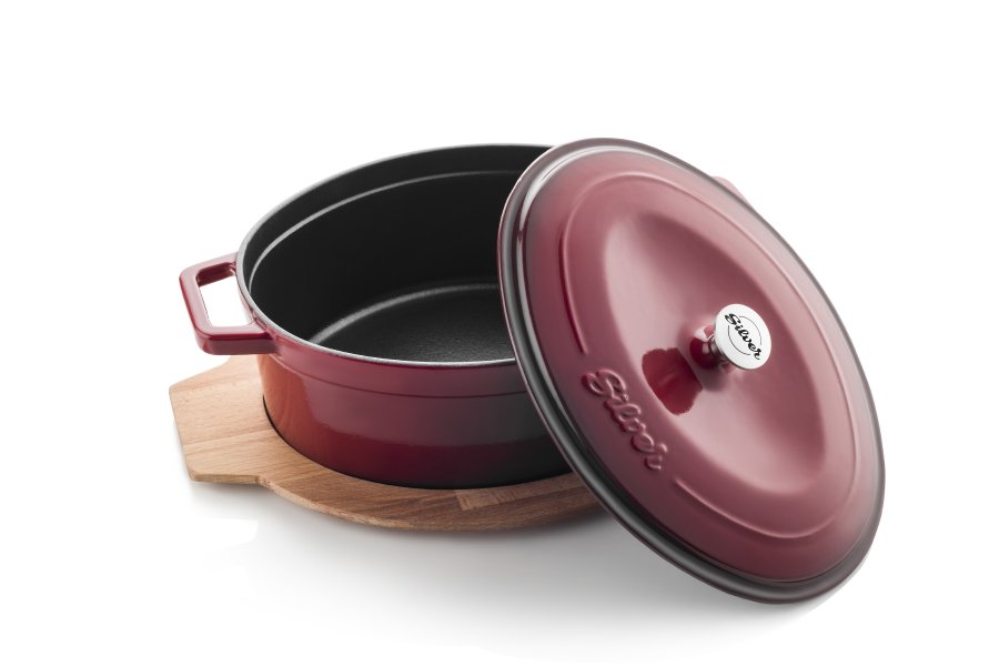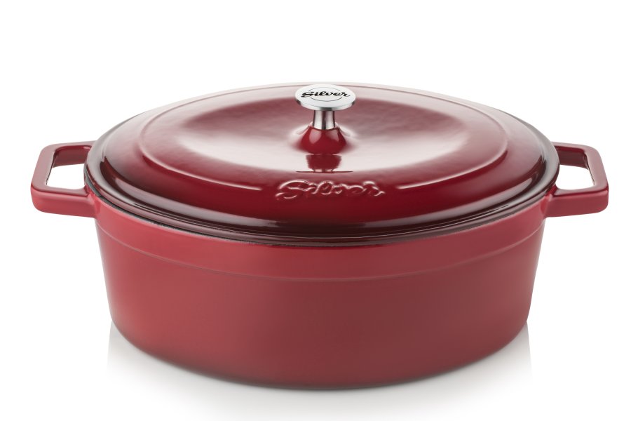 Litinový oválný hrnec nebo také pekáč s poklicí je vhodný jak pro vaření, tak pro pečení. Kolekce nádobí značky Silver je vyrobena z litiny. Po odlití a vyčištění prošel každý produkt vícestupňovým smaltováním, sušením a vypalováním. Díky těmto procesům má nádobí mnohem lepší odolnost proti poškrábání. Největší výhodou litinových hrnců je však možnost zahřátí na velmi vysoké teploty, což zase zlepšuje chuť pokrmů v nich připravovaných. Litinové hrnce jsou chráněny proti rzi a ulpívání. Speciální slitina litiny a glazovaný smalt při teplotě nad 1000 ° C zabraňují vstupu nebezpečných chemických sloučenin do potravin. Pekáč lze používat v troubě i na sporáku. Unikátní rustikální vzhled znamená, že v něm můžeme snadno servírovat pokrmy.