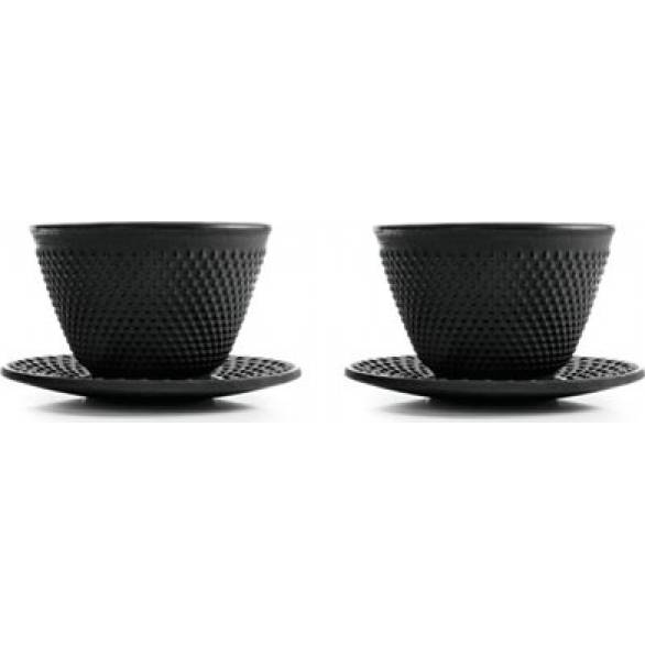 Luxusní sada dvou černých šálků Ibili vám bude společníkem každý den. Vyrobeny jsou z bílého porcelánu. Na vnější straně je jemný vzorek. Hrnky jsou v černé barvě. Sada šálků s objemem 120 ml je perfektní na espresso i další druhy káv. Hrnky lze mýt v myčce nádobí.