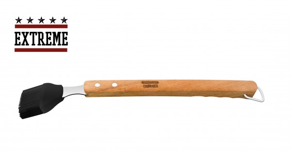 Silikonová mašlovačka EXTREME je ideálním doplňkem grilu pro všechny kuchaře. Vyrobena z nerezové oceli AISI 430 (odpovídá DIN 1.4016) s nýtovanou rukojetí X-TRA LANGEN z tvrdého dřeva. Kartáč má na konci držadla kovový kroužek, pomocí kterého můžete snadno zavěsit silikonový kartáč k dalšímu náčiní. Lze mýt v myčce nádobí. Délka 42 cm.