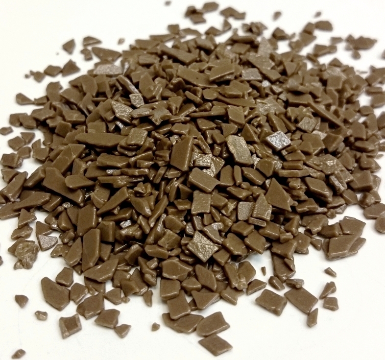 Čokoládová dekorace určená pro závěrečné zdobení dortů, zákusků a cukroví. Šupiny určené pro cukrářskou výrobu, k posypům a ke zdobení dortů a dalších cukrářských a zmrzlinářských výrobků. Velikost vloček cca 0,3 - 1 cm. Složení: cukr, plně ztužené rostlinné tuky (palmojádrový), sušené odstředěné mléko (10%), kakaový prášek se sníženým obsahem tuku (4%), laktóza, emulgátor E322 sójový lecitin, glukózový sirup, aroma (vanilin). Bezlepkové. Skladujte na chladném a suchém místě (do 20°C).