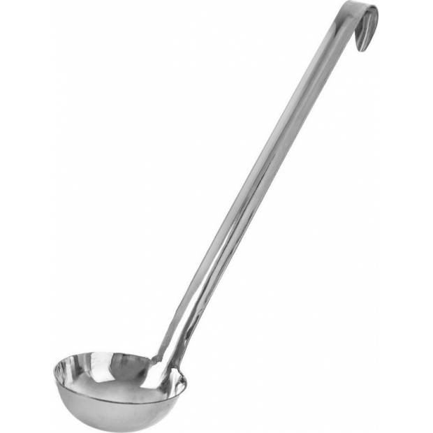 Naběračka. Materiál: nerez. S háčkem - možnost zavěšení. Rozměry: pr. 7 cm, d. 29 cm.