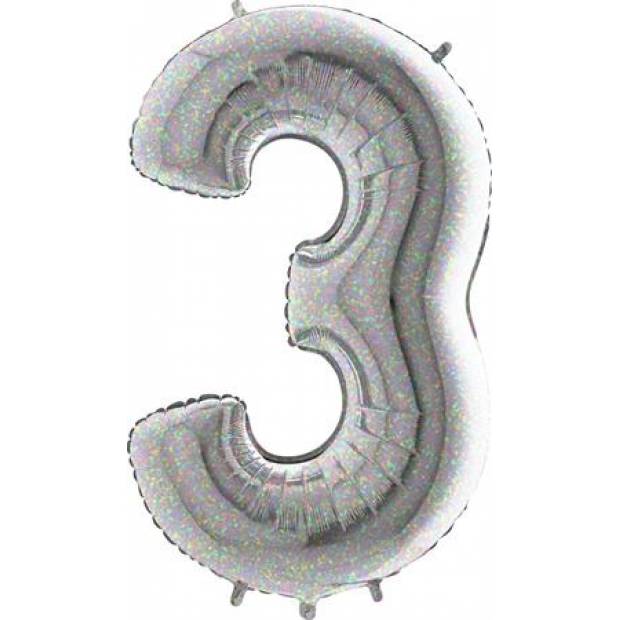 Nafukovací balónek číslo 3 holografický 102cm extra velký - Grabo